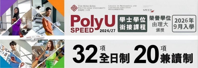 香港理工大学 SPEED 学院,让你 1-2 年拿到港理工本部颁发的本科学位,课程由港理工本部参与设计、审核,完全按港理工标准授课。